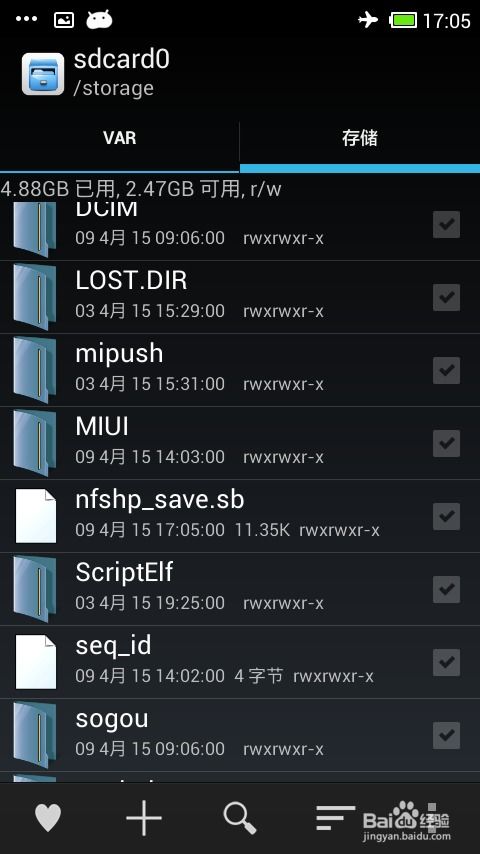 2. 在文件管理中,找到“内部存储”或者“SD卡”。